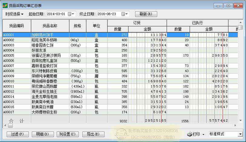 采购报表:货品采购订单汇总表