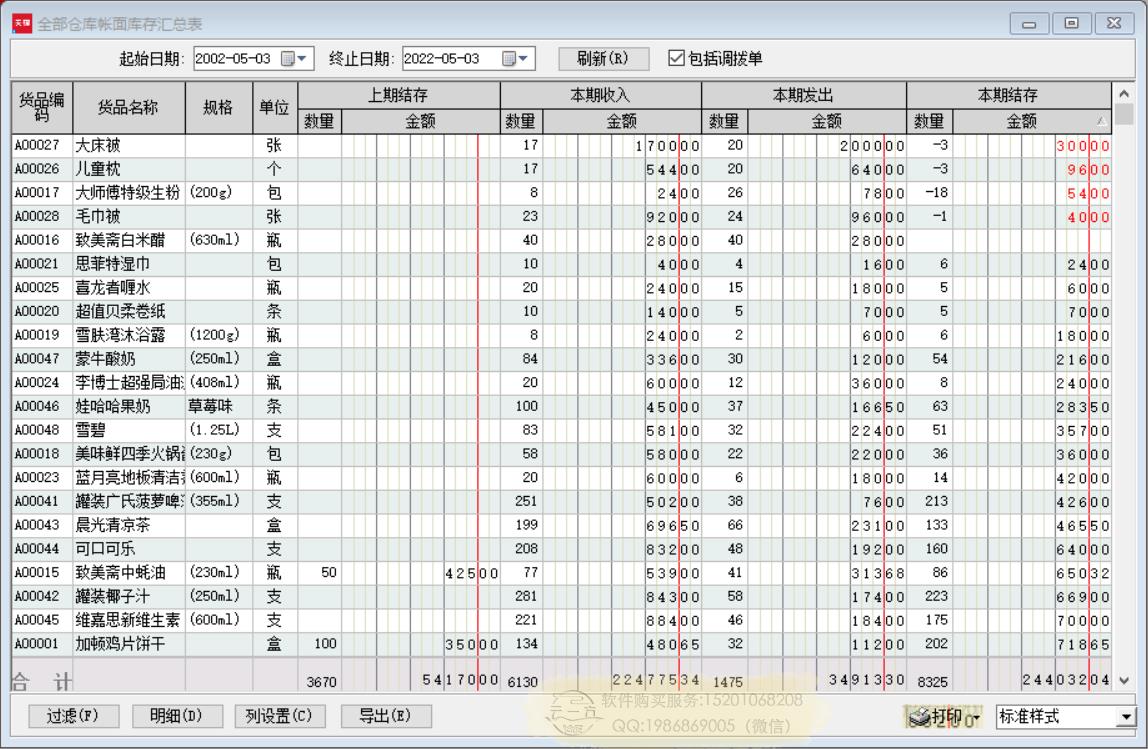 库存报表:仓库账面库存汇总表