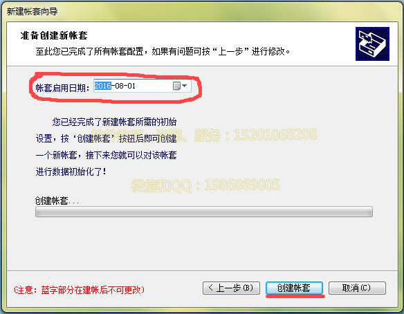 6.选择账套启用日期,这个启用日期在建好账套后是不能修改的,点"创建账套"。